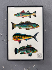 These offshore artwork framed prints measure approximately 6"x4" and come in a frame that can be hung on the wall or has an option to display freestanding on its own.