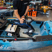 Ready to upgrade your kayaking experience? Our enhanced Pedal Drive Adapter now clicks seamlessly into most Mirage Drive-style fin pedal kayaks (including Hobie, Vibe, and Pelican), converting your pedal power to electric propulsion. This new model boasts a more compact and streamlined design, better nose protection, and is 15% lighter with less drag, allowing you to glide through shallow waters and fit a wider range of kayaks.