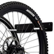 - Rubber-coated hooks hold bike rims up to 2" wide